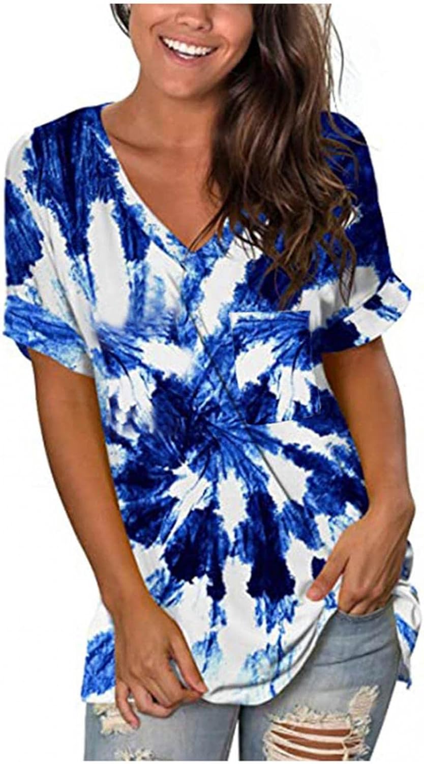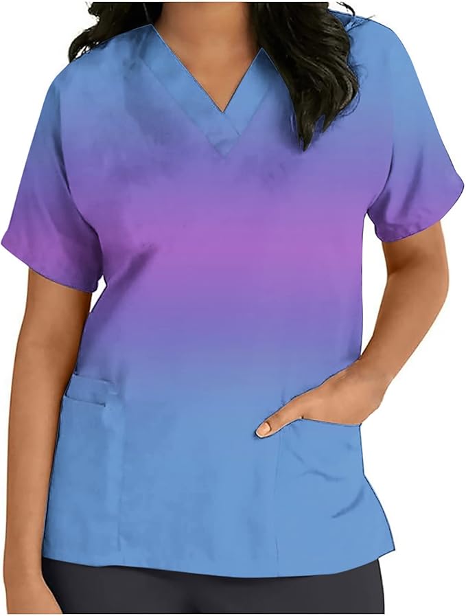 Amazon Com Scrubs Top Women Fashion Tie Dye Printed V Neck Short Sleeve Working Uniform Summer Scrubs Tee Shirt With Pockets Clothing Shoes Jewelry